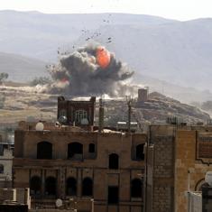 Bombardeo aéreo sobre Saná, capital de Yemen.