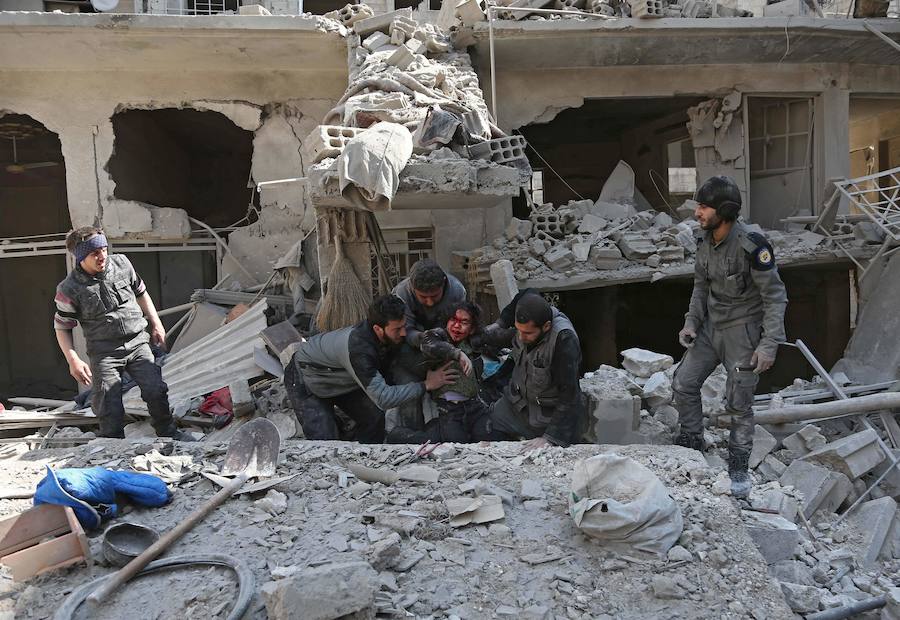 El régimen de Bashar el-Asad y sus aliados repiten la estrategia de Alepo y, tras el cerco y los bombardeos, anunciaron que llegará el turno de la incursión terrestre. Los grupos armados de la oposición, entre ellos el brazo sirio de Al-Qaida, también siguen la misma táctica y combaten en una zona urbana donde se estima que quedan más de 400.000 civiles. Mientras, disparan morteros hacia Damasco, donde doce personas han perdido la vida esta semana. El impacto de la artillería y de la aviación en las zonas civiles es demoledor y se recuperan las imágenes que llegaban de los barrios orientales de Alepo. En nombre de la guerra contra el terror, argumento que defiende el régimen para justificar los bombardeos, no hay líneas rojas y en los últimos cuatro días seis hospitales de Guta han sido atacados, según Naciones Unidas. Su coordinador de Asuntos Humanitarios (OCHA) para Siria, Panos Moumtzis, calificó de «inaceptables» los bombardeos sobre hospitales, entre ellos una maternidad.