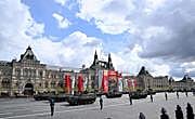 Según el Ministerio de Defensa ruso, en la parada militar tomaron parte 11.000 hombres y 131 unidades de tanques, blindados y otros vehículos además de 33 agrupaciones de distintas unidades del Ejército de Tierra. Marcharon también ante la tribuna soldados llegados desde Dombás. Entre el material bélico exhibido estaban los modernos tanques T-90M y Armata, además de misiles con capacidad nuclear Iskander-M y YARS. La parada militar contó con una cobertura apabullante de medios de comunicación nacionales y llegados de prácticamente todos los rincones del planeta.