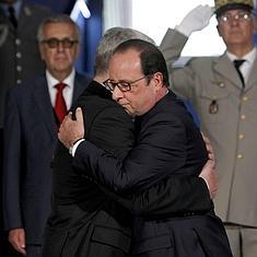 Luego, bajo el objetivo de las cámaras, se dieron un cálido abrazo. "Es un testimonio de la fuerza de la amistad entre los dos países, que les permite mirar juntos su historia común, incluso la más dramática", subrayó la presidencia francesa.
