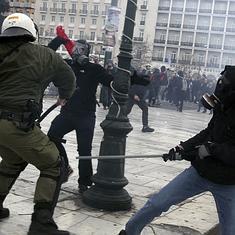 Incidentes entre manifestantes y agentes de Policía durante la jornada de huelga general en Grecia.