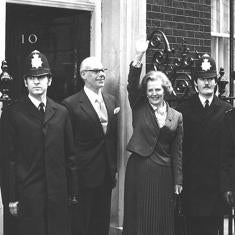 Margaret Thatcher tras ser elegida Primera Ministra.