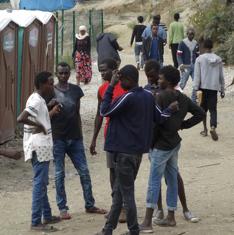 Un grupo de inmigrantes en la denominada 'Jungla' de Calais.