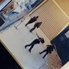 Captura realizada desde un móvil del momento donde el agresor cae abatido por la policía.