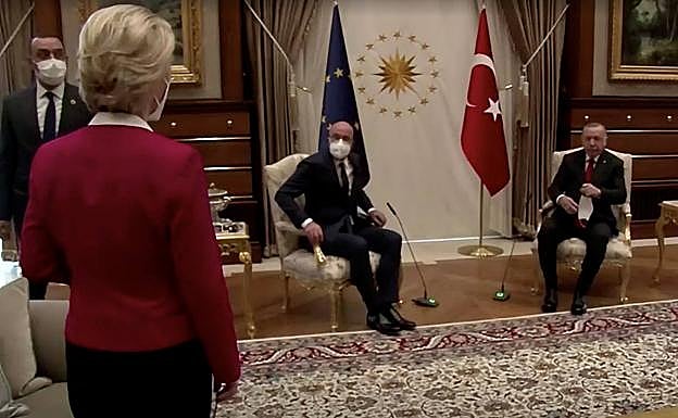 La Unión Europea trata de pasar página ante el ya conocido como 'sofagate' e incluso desautoriza al líder europeo que con más contundencia ha criticado al presidente turco, Recep Tayyip Erdogan, por no ofrecer el trato que le correspondía a la presidenta de la Comisión Europea, Ursula Von der Leyen, durante el encuentro que mantuvieron el pasado martes en Ankara, en el que también participó el presidente del Consejo Europeo, Charles Michel. Después de que el primer ministro italiano, Mario Draghi, calificara al líder turco de «dictador» y criticara la «humillación» a la que sometió a Von der Leyen, al no ofrecerle un sillón y relegarla a un sofá, el portavoz de la Comisión Europea Eric Mamer, intervino este viernes para desautorizar a Draghi.