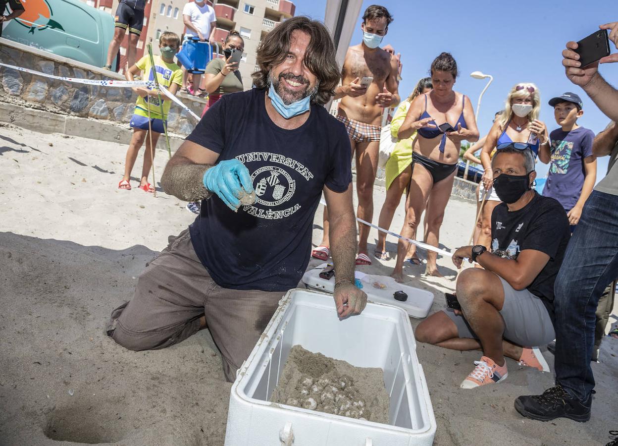 El nido ha sido trasladado a un emplazamiento más seguro, aunque cercano al punto original de desove, porque se encontraba muy próximo a la orilla del mar y a viviendas, junto a un paseo, informa a LA VERDAD la Consejería. Los expertos han decidido finalmente la traslocación de los huevos a una distancia de 500 metros, junto a un puesto de Protección Civil y en un entorno más protegido.