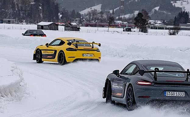 El Porsche 718 Cayman GT4 RS es el nuevo modelo cumbre de la familia 718, un coche diseñado para disfrutar al volante y que impresiona por la ligereza de su construcción, la puesta a punto de un chasis extremadamente ágil, una sofisticada aerodinámica y su sonido único. Tras su estreno en Los Ángeles, el Porsche 718 Cayman GT4 RS y su variante Clubsport han causado sensación en el evento GP Ice Race de Zell am See. Más allá de la propia carrera sobre hielo, sorprendió el combustible renovable utilizado en ambos deportivos.