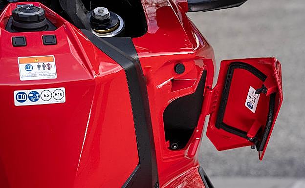 También es nueva la preciosa pantalla TFT de 5» en color, que puedes configurar a tu gusto, y que da visibilidad al Honda Smartphone Voice Control, que comunica al conductor con su smartphone en marcha y permite la gestión de voz de las llamadas telefónicas, del email, música y navegación. Es necesario un auricular de casco y la conexión del teléfono al tablero es a través de Bluetooth; la gestión del Honda Smartphone Voice Control también es posible mediante los botones de la piña izquierda.