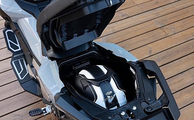 El freno de mano ha pasado al manillar, dejando espacio para una pequeña guantera tras el escudo. La pantalla delantera es más estilizada y mantiene sus 5 diferentes posiciones de altura. El hueco del asiento, de 22 l. de capacidad (cabe un integral) equipa una toma de corriente tipo USB. Honda ha preparado varios paquetes de equipamiento opcional para la X-ADV, que podrán comprarse completos o por elementos sueltos.