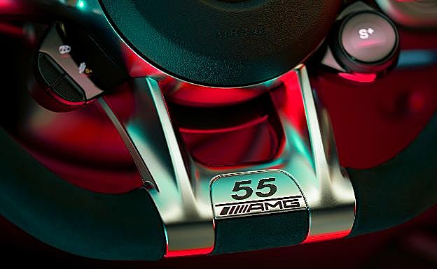 El volante AMG Performance de microfibra DINAMICA también conmemora el aniversario con los distintivos 'AMG' y '55', convirtiendo el modelo especial en una exclusiva pieza de coleccionista. Los asientos AMG de diseño específico están tapizados en cuero napa bicolor en color rojo/negro clásico. El ambiente exclusivo del interior se completa con los elementos de adorno AMG en carbono mate.