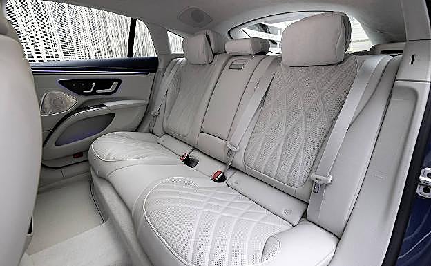 Con unos tapizados en colores claros en nuestro coche, el ambiente es de puro relax, y en ocasiones el coche activa música vigorizante o relajante combinada con masajes en la espada para 'entretener' nuestros viajes. En nuestro caso lo consigue, y llegamos a destino como si apenas hubiéramos conducido. Nos subimos en plazas traseras, amplias, sin túnel central de transmisión, y con dos o tres tablets para ver nuestros programas favoritos. El maletero es grande, con más de 600 litros, acceso por portón trasero -el EQS es un cinco puertas- y mucha superficie, por lo que también es excelente en este campo.