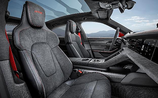 Los numerosos detalles en negro o en colores oscuros en el exterior son un elemento típico del GTS, como el carenado delantero, la base de los retrovisores exteriores o las molduras de las ventanillas. Además, la nueva variante del Taycan puede equiparse con el paquete Sport Design, que incluye revestimientos exclusivos para la parte delantera y los faldones laterales. El interior también es exclusivo y elegante, en el que sobresale, sobre todo, sus asientos deportivos Plus adaptativos delanteros, de serie, que combinan un soporte lateral deportivo con comodidad en los trayectos largos.
