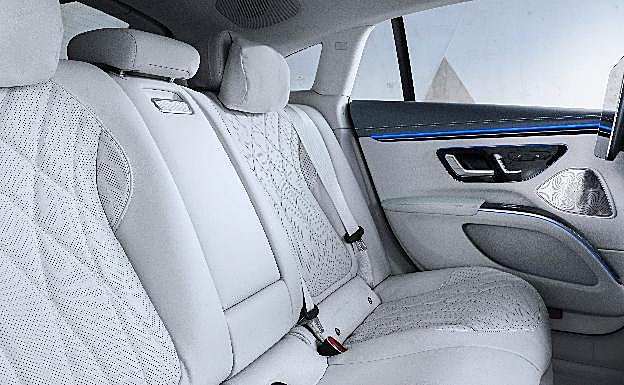 En el EQS es posible manejar el asistente de voz también desde la parte trasera. En líneas generales, los ocupantes de las plazas traseras disfrutan de la misma extensa oferta de infoentretenimiento y de confort que el conductor y el acompañante. Para ello se han previsto hasta tres visualizadores con pantalla táctil y variadas opciones de manejo intuitivo.