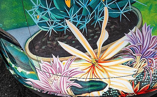 De camino a la parte trasera, la imagen pintada parece deslizarse sobre el techo y las aletas posteriores. En este punto, la flora abre un espacio para dejar a la vista el cielo azul y las mariposas presentes en la escena. «La decoración de Queen of the Night presente en el coche, culmina en la zaga con una flor de gran tamaño que envuelve por completo el parachoques y se ilumina dramáticamente con la línea horizontal de luz característica del Taycan», explica Phillips. «Conceptualmente, mi decoración Queen of the Night tiene en cuenta al Taycan como un icono de diseño de la movilidad eléctrica y la velocidad», añade.