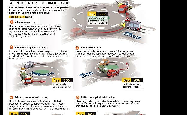 Uno de cada tres conductores implicados en siniestros en glorietas cometían alguna infracción, principalmente no respetar la prioridad, la velocidad excesiva y no mantener la distancia de seguridad, según los datos de la DGT del año 2020.