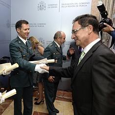 El delegado ha entregado la Cruz de Oficial al inspector de Cuerpo Nacional de Policía, Jefe Participación Ciudadana Brigada Provincial Seguridad Ciudadana de Murcia, Juan Iglesias Maldonado; y el teniente de la quinta Zona de la Guardia Civil, Joaquín Gallego Sanabria.