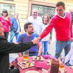 Y entre selfis y posados, Sánchez tuvo la oportunidad de sentirse como una celebridad al recibir de sopetón a dos turistas asiáticas que le pidieron hacerse una foto con él sin saber quién era, convencidas por unos camarógrafos que buscaban planos exóticos tras circular durante veinte minutos ante veladores repletos de platos de paella, cañas, vinos y tapas de ensaladilla. Sánchez estuvo amable con las mujeres que encontró en su recorrido. «Yo le he dicho que además de guapo hay que tener propuestas», decía una mujer a otra en la puerta de una pizzería a la que también entró para saludar a sus jóvenes dependientas. Con ellas y con otros trabajadores que encontró en la Puerta de Murcia habló de la formación como oportunidad para avanzar socialmente.