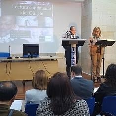 Representantes políticos y culturales se unen a la lectura continuada de la obra universal de Cervantes este viernes en el Salón de Actos de la Universidad Nacional de Educación a Distancia, en Cartagena