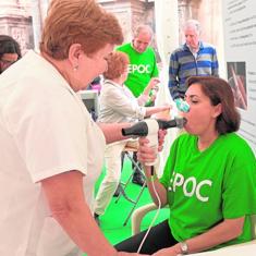 La consejera de Sanidad, Encarna Guillén, quiso animar ayer a todas las personas con riesgo de contraer esta enfermedad a someterse a una espirometría, y ella misma se realizó la prueba durante la primera jornada de patología respiratoria 'Neumología-Atención Primaria'. El acto reunió a profesionales y pacientes, y también incluyó una marcha saludable a la que se sumó la consejera.