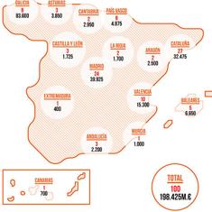 En el extremo contrario, Castilla y León fue la que menos riqueza generó en el periodo de clasificación, 1.725 millones de euros, representados por tres personas.