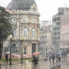 El centro de Cartagena registra la mayor nevada desde 1939 y el municipio recibe la segunda en doce años. Los vecinos salen a la calle a mediodía para presenciar un hecho insólito, que vació comercios y oficinas y que originó atascos