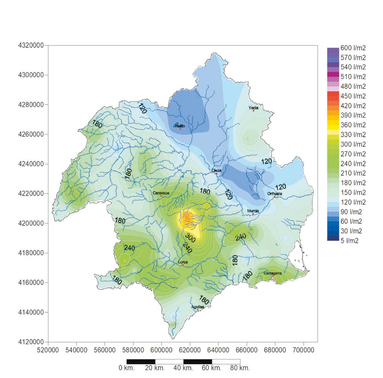 en la cuenca del Segura (l/m2)