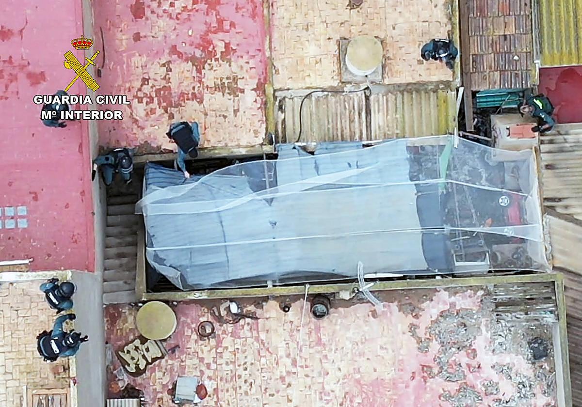 Recientemente, en un amplio dispositivo, la Benemérita llevó a cabo el registro de su domicilio, donde se produjo un intento de fuga a través de los tejados de las viviendas colindantes. Las indicaciones del piloto de drones dirigieron a los agentes hasta un patio cubierto por plásticos donde se había ocultado, lugar donde fue finalmente detenido. Además, en la propiedad se localizaron los cuerpos sin vida de un perro atado, así como de un gallo de los habitualmente empleados para peleas, este último en el interior de un armario de la cocina. Por ello también se le atribuyen dos delitos de maltrato animal.