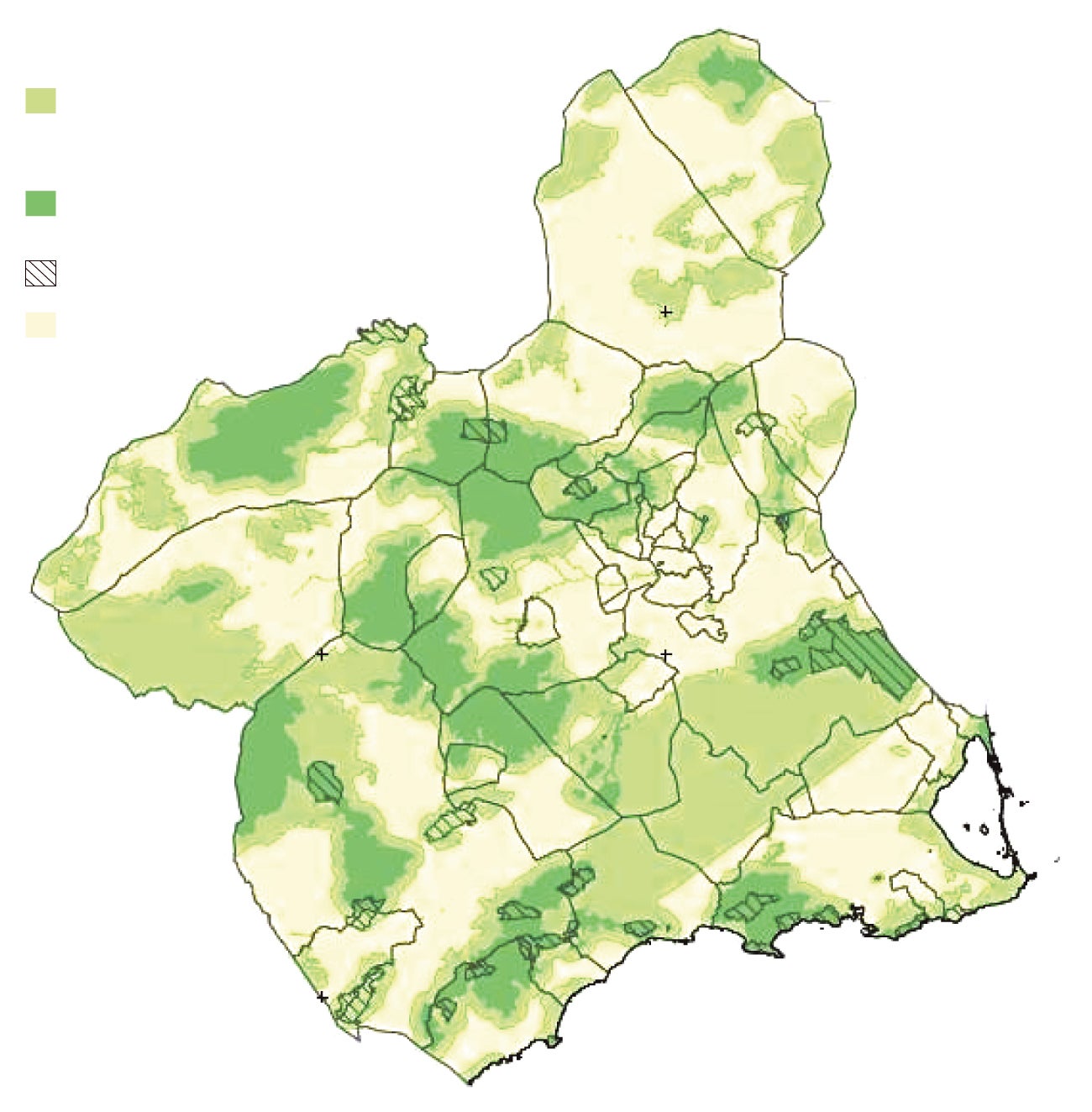 El consejero de Medio Ambiente, Juan María Vázquez, explica, en declaraciones a este periódico, que «este incremento de la superficie respecto a la orden de 2011 sobre las áreas prioritarias de protección a la avifauna supondrá la cobertura de dos de cada tres electrocuciones producidas en estos últimos 20 años y casi el 90% de las electrocuciones de águila perdicera registradas desde entonces». La nueva cartografía pretende cubrir una parte importante donde esta rapaz suele moverse dentro del territorio murciano: las sierras de las Moreras (Mazarrón), Almenara (entre Lorca, Águilas y Mazarrón), Carrascoy (entre Murcia, Alhama y Fuente Álamo), Columbares (Murcia) y Altaona y Escalona (Murcia).