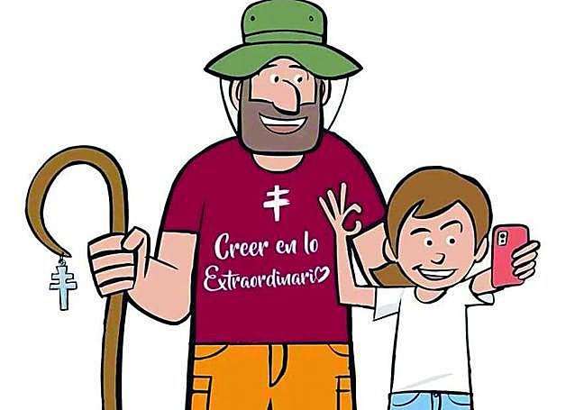 Los personajes creados por José Manuel Puebla para este proyecto, Javi y Leo (buscando ese símil con Jubileo) son la imagen del peregrino actual, «que aúna dos generaciones, desde los padres y los hijos a los amigos y los compañeros de trabajo, así como la representación de ese Camino 'slow' que promociona la Consejería».