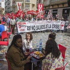 Con motivo del Día del Trabajador, representantes de UGT, Comisiones Obreras y CNT, así como de varios partidos políticos y coaliciones electorales, marcharon desde la Plaza de España a la Plaza del Ayuntamiento (donde se leyó un manifiesto) tras varias pancartas y bajo un lema común: «Así no salimos de la crisis».