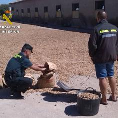 La Guardia Civil evita la sustracción de este producto tras localizar numerosos sacos preparados para transportar la mercancía