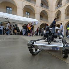 Correteando por el patio de la Escuela de Industriales estuvo durante toda la jornada el robot oruga que ha fabricado la asociación UPCT Makers, preparado para intervenir en caso de catástrofes como terremotos y que cuenta con un brazo robótico que el usuario puede controlar a distancia con su réplica en miniatura.