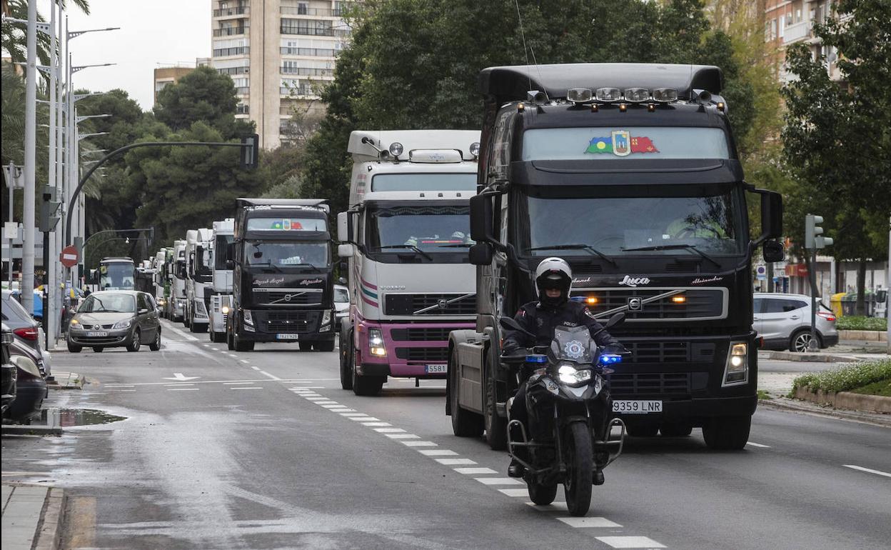 En Murcia, decenas de camiones se han lanzado también en caravana esta mañana por las calles de la ciudad. Concentrados en las inmediaciones de Nueva Condomina se han dirigido de forma lenta por la autovía A-7 hacia el centro urbano, provocando a su paso importantes retenciones de tráfico. También lo han hecho sobre las 15:30 horas, colapsando el centro de Murcia a su paso por la Circular y la avenida Primo de Rivera.