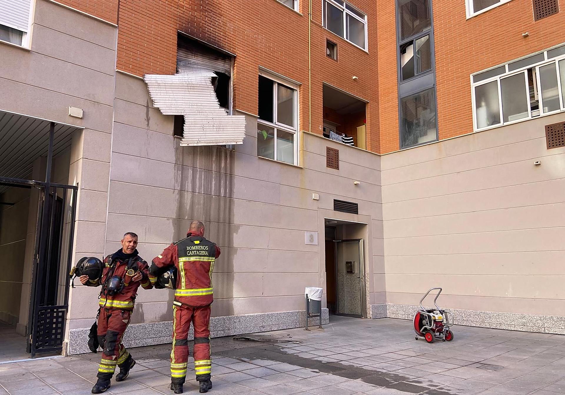 Los bomberos de Cartagena se personaron en la zona con una bomba urbana ligera, dotada con seis efectivos, y una autoescala con otros tres. A los pocos minutos lograron tener la situación controlada. Fueron precisamente esos funcionarios quienes sacaron de la vivienda a las mascotas, un perro y un gato, que vivían con la dueña de la vivienda.
