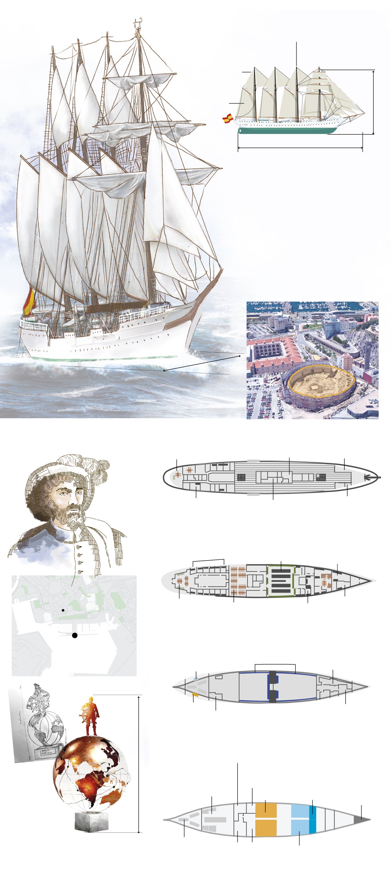 Si desplegáramos todas las velas del buque ocuparía aproximadamente todo el interior del anfiteatro romano