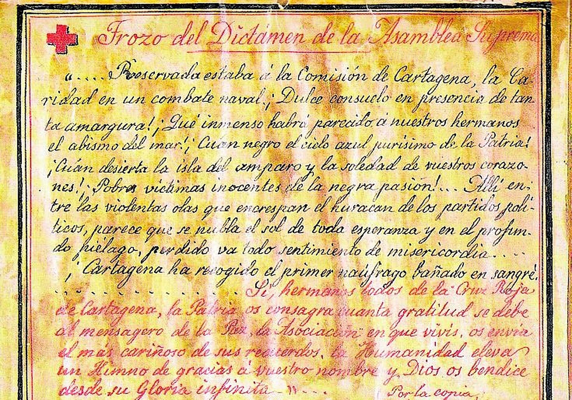 Pero Bonmatí no se conformó con la docencia. Entendía la educación como parte de una misión más amplia: el servicio a los demás. Por eso, pocos años después, fue uno de los impulsores de la Cruz Roja en Cartagena, apenas cuando la institución empezaba a asentarse en España tras la batalla de Castillejos (1860) y las primeras experiencias de socorro sanitario en campaña. Desde 1872, presidía la asamblea local de la Cruz Roja, organizando recursos, personal y redes de apoyo justo en vísperas del estallido cantonal.
