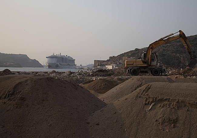 El pasado junio, todavía las máquinas estaban horadando más la ladera del monte Galeras para abrir hueco a todo el acerado, arbolado y carril bici. Este julio, hubo más movimiento de máquinas y apertura de zanjas en todo el recorrido entre el puente de Santa Rosalía -junto a la entrada de Navantia- y el muelle del Carbón. Y este agosto vuelta a tapar la zanja. Así lo pudo constatar LA VERDAD ayer, donde por la mañana se apreciaban movimientos de una pala que iba transportando la tierra amontonada en una explanada ubicada entre las instalaciones abandonadas de la Armada y la propia playa del Espalmador, frecuentada en ese momento por contados bañistas en busca de un remojón discreto y algún que otro pescador aficionado. Todo ello, además, en suelo militar, como así lo indica claramente la cartelería.