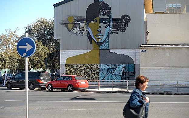 Antonio Gil / AGM El cruce de la calle Jacinto Benavente con Esparta es muy concurrido por varios motivos, pues conecta con el Paseo Alfonso XIII, está junto al Centro Cultural Ramón Alonso Luzzy, el colegio Sagrada Familia y, unos metros más adelante, el hospital universitario Santa María del Rosell. En medio de todo está el mural de un joven de Kraser Tres, artista cartagenero aunque residente en Milán. Lo pintó en 2010.