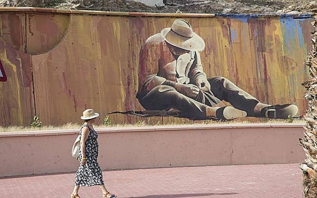 José María Rodríguez / AGM La reforma de la carretera del muelle de Santa Lucía incluyó la decoración de las fachadas con varios murales, hasta la glorieta de la Grúa Sansón. Justo al lado del mar, cerca de la Pescadería, este mural de Goyo representa a Santa Lucía como barrio pesquero.