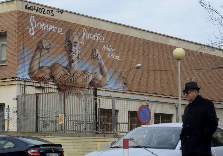 Antonio Gil / AGM La imagen Pablo Ráez, el joven marbellí cuya lucha contra la leucemia aumentó la donación de médula, decora la fachada del instituto Isaac Peral de Cartagena. Un héroe. El artista José Luis Martínez Escudero, cuyo nombre artístico es Goyo 203, fue el encargado de pintar el mural, en marzo.