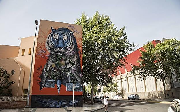 José María Rodríguez / AGM En pleno Ensanche de la ciudad, muy cerca del Centro Cultural Ramón Alonso Luzzy, el mural gigantesco de un tigre decora la pared de un edificio de la calle Juan de la Cosa, a simple vista de los vecinos que pasean hacia el Paseo Alfonso XIII y los vehículos que circulan en dirección a esta vía, una de las principales arterias de la ciudad. El autor de la obra es el cartagenero Kaser Tres, que tiene varias pinturas por la ciudad.