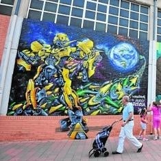 Cuatro grafiteros -'Come1', 'Zai', 'Isaak' y 'Chip'- han trabajado durante cinco días para realizar un gran mural que ocupa cuatro paños de 4 metros de ancho y 5 de altura en el lateral de la piscina del Infante. La peculiaridad es que está dedicado al reciclaje. En colaboración con Ferrovial, y dentro de su iniciativa '12 meses, 12 muros', la Oficina del Grafiti ha pintado este mural, ya que el 17 de mayo se celebró el Día Mundial del Reciclaje. En el muro se pueden ver dos personajes montados en un avión hecho con cartón y diferentes figuras hechas con papel, un niño haciendo una pompa de cristal imitando al soplador de vidrio, un 'transformer' que absorbe la chatarra de la Tierra y un paisaje sucio y desolado por no respetar el medio ambiente, donde se ve a un personaje recogiendo basura y restos. Se han tenido que habilitar dos torres rodantes para llegar a las partes más altas y utilizar 80 botes de aerosol y 20 kilogramos de pintura plástica.