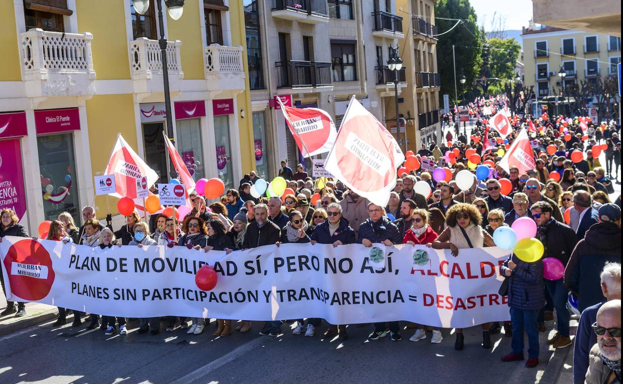 'Resistiré'. Esa era la canción que resonaba por los altavoces minutos antes de que este domingo partiera la manifestación contra el Plan de Movilidad. Una buena metáfora del espíritu que luchan por mantener vivo 'Cierran mi barrio', 'Murcia centro vivo', 'Espinardo colapsado', 'SOS Vistabella', y los placeros de Verónicas. Bajo su lema, 'Plan de Movilidad sí, pero no así', reunieron de nuevo a varios centenares de murcianos que, una vez más, reclamaron al Consistorio que se les permita participar y se les dé voz de cara a unas obras que son inminentes.
