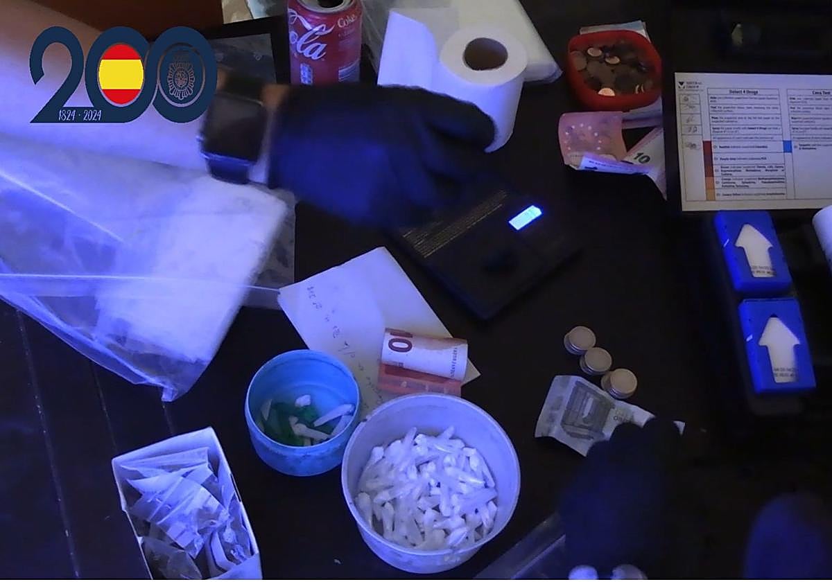 Tras constatar que se estaban desarrollando labores de ventas de sustancias estupefacientes en su interior y que se trataba de un narcopiso que funcionanaba como «supermercado de la droga» durante todo el día y la noche, los agentes procedieron a realizar la entrada y registro en dicho inmueble, que estaría utilizado exclusivamente para este fin delictivo. En el registro los investigadores intervinieron más de 100 envoltorios de cocaína en dosis perfectamente preparadas para su distribución y diversas cantidades de hachís y marihuana.