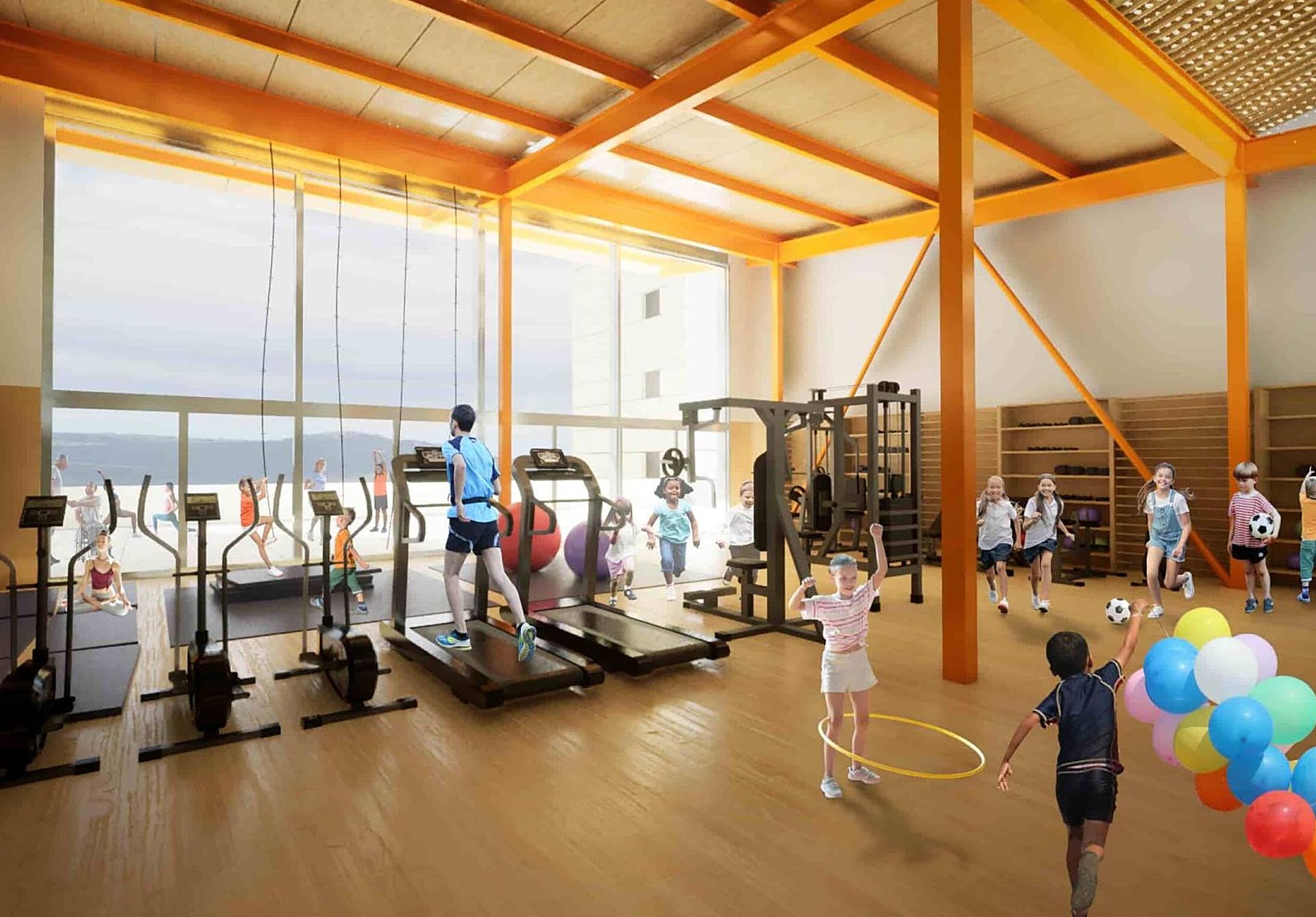 Contará con superficie techada diáfana que creará un refugio sobre el patio existente, espacio de gimnasio para rehabilitación y deporte, box individuales, dos cuartos de baño, espacio de almacenaje, despacho y espacio exterior. Desde la Fundación Aladina explican que el gimnasio estará destinado a «mejorar la recuperación física y emocional de los niños y adolescentes hospitalizados, ofreciendo un entorno específico para su rehabilitación y bienestar».