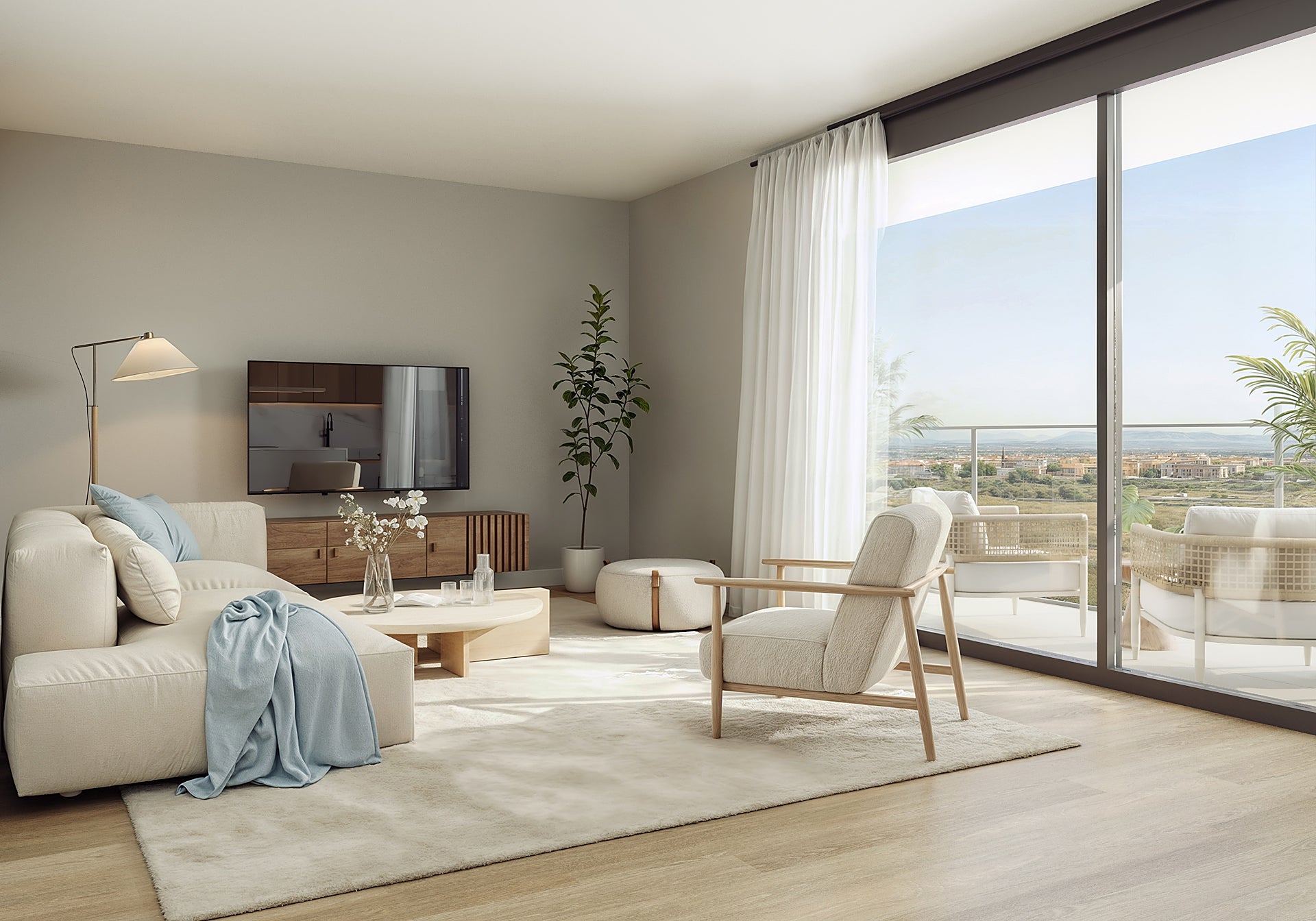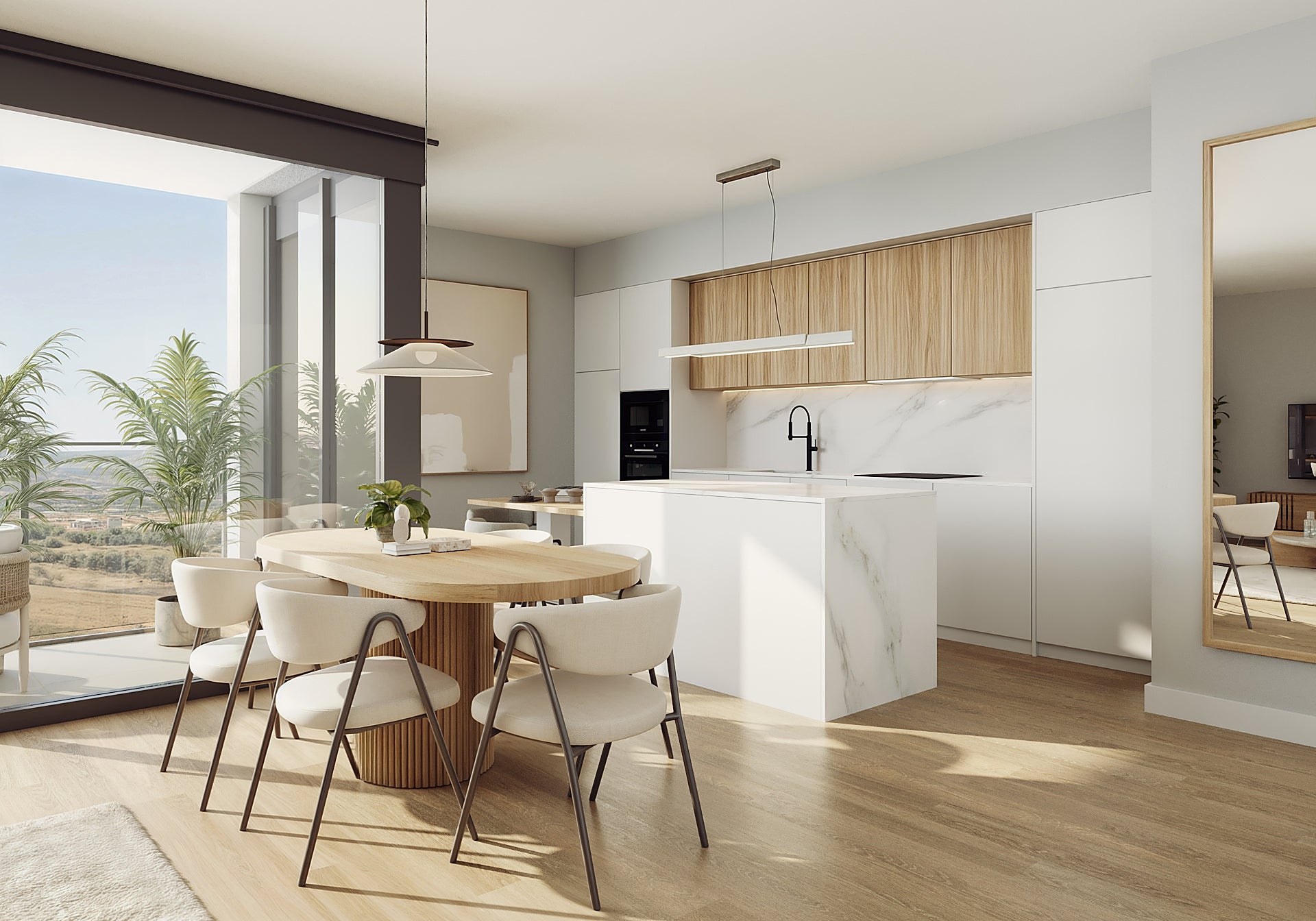 Las viviendas están diseñadas con doble orientación y ventilación cruzada para garantizar la circulación natural del aire y una mayor entrada de luz en todos los espacios, mejorando el confort ambiental y favoreciendo el ahorro energético.