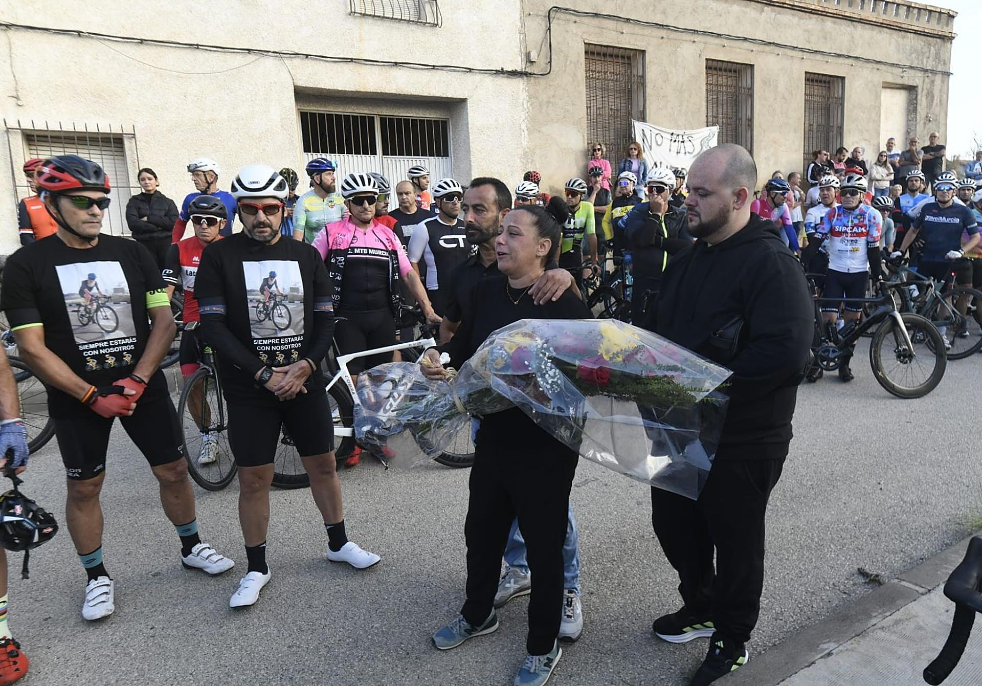 Minuto de silencio, sentada y flores para rendir homenaje al ciclista fallecido en la pedanía murciana de Cobatillas