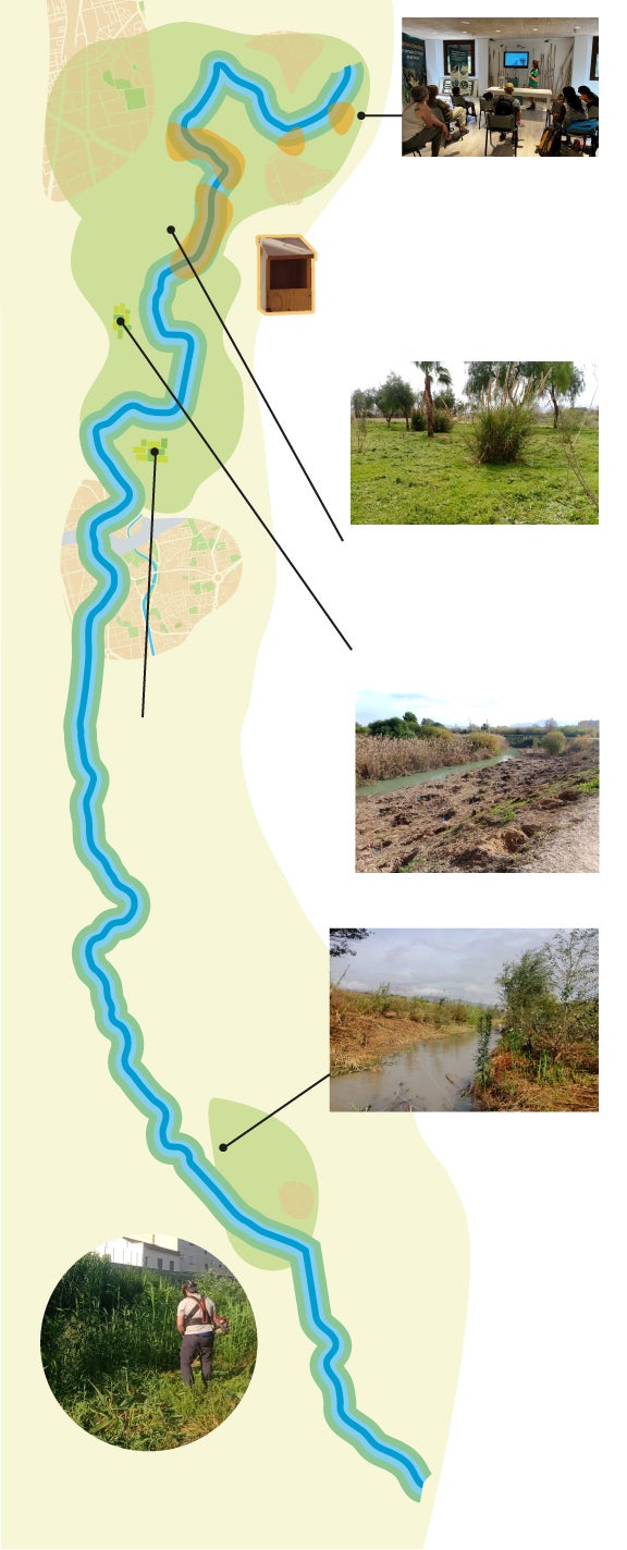 La mayoría de los árboles se plantaron entre 2014 (792 pies) y 2015 (1.201) porque «estaba todo por hacer y había espacio de sobra», comentó Jorge Sánchez, biólogo y miembro de Anse, que trabaja en el proyecto. En 2016 se utilizaron 412 pies, en 2017, 276; en 2018, 286; en 2019, 347; en 2020, 191; en 2021, 336 y el año pasado 137 ejemplares. «Las plantaciones están cada vez más limitadas tanto porque no hay tantas zonas libres como por razones de seguridad frente a las inundaciones», añadió Sánchez, quien puntualizó que todos los trabajos se han coordinado con la Confederación Hidrográfica del Segura (CHS). Las actuales labores son de mantenimiento y reposición, principalmente.