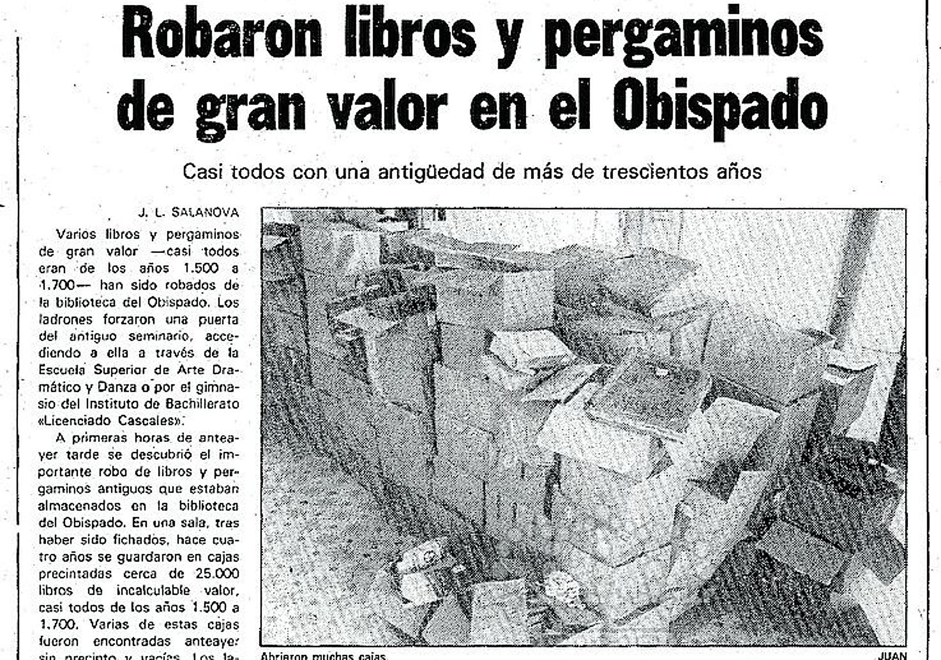«Nos enteramos por casualidad, porque desde hace bastante tiempo ninguna persona entra en la biblioteca», reconoció el secretario del obispo. LA VERDAD publicó entonces que había más de 25.000 libros, «según el fichero de la biblioteca».