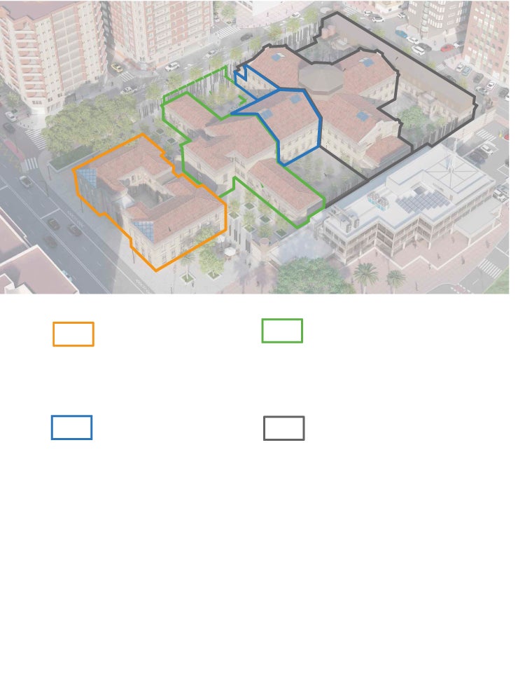 Queda para una fase posterior -la 2.2, que carece aún de financiación- el abordaje del inmueble en lo que se refiere a las galerías de las celdas. De hecho, las obras no pasarán durante estos meses de la zona del antiguo panóptico, hoy derrumbado. Sin embargo, sí se realizarán actuaciones de cimentación y consolidación de la estructura, la cubierta y las fachadas -incluyendo nuevos lucernarios- en el área anexa y de entrada a los módulos estrictamente penitenciarios, con el fin de garantizar la seguridad en el entorno. También se realizará una pequeña intervención en uno de los patios del ala derecha, los que se encuentran justo a la espalda del edificio de Correos, aunque no se permitirá aún el acceso al mismo.